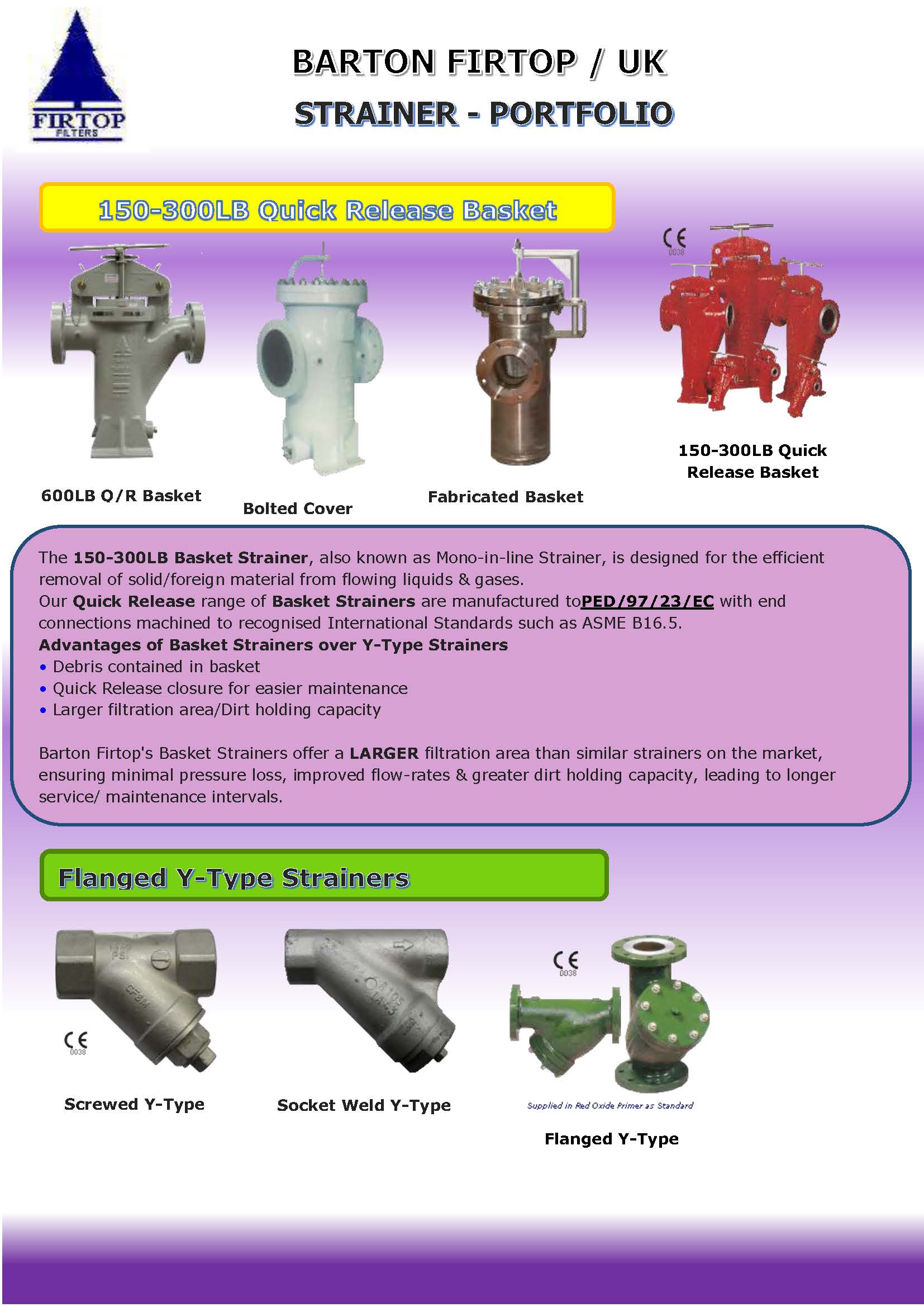 Barton firtop strainers. Basket strainers technical data sheets. Basket strainers are available from barton firtop manufactured to order with a number of specialised requirements often utilising ex stock castings. Barton firtop engineering company limited is a certified iso 9001 2008 manufacturer of filters strainers coalescers and suppliers of flame arresters predominantly for the oil and petrochemicalindustry. Duplex strainers technical data sheets.